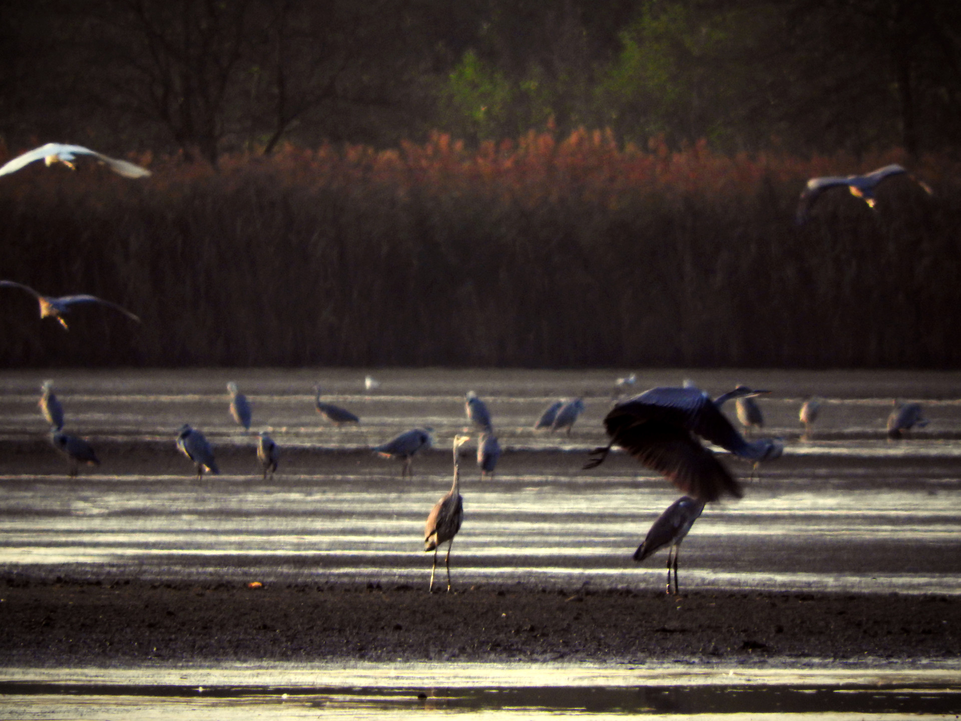 Drzewa na przeciwległym brzegu są szare. Splątane tło dla mojej czarnej sylwetki. Mróz nic na nich nie namalował. Nie pokrył białym nalotem. Szkoda. Niektóre jak wierzby błyszczą brązami a inne nieznane mi gatunki przyjmują barwę rudą. To istny gąszcz. Patyki, kijki, badyle. Poskręcane zwarte nieprzepuszczalne struktury. Tylko ptaki mogą się w nich odnaleźć, w nich przemieszczać w różnych płaszczyznach, podskakiwać i lądować. Człowiek raczej traci wzrok w takiej plątaninie. Jego gałki oczne są prymitywne mogą reagować w tych warunkach tylko na ruch lub na zastygły obraz gdy coś już dłużej jest statyczne. I on sam jest stały. W biegu jest ślepy jak kret.