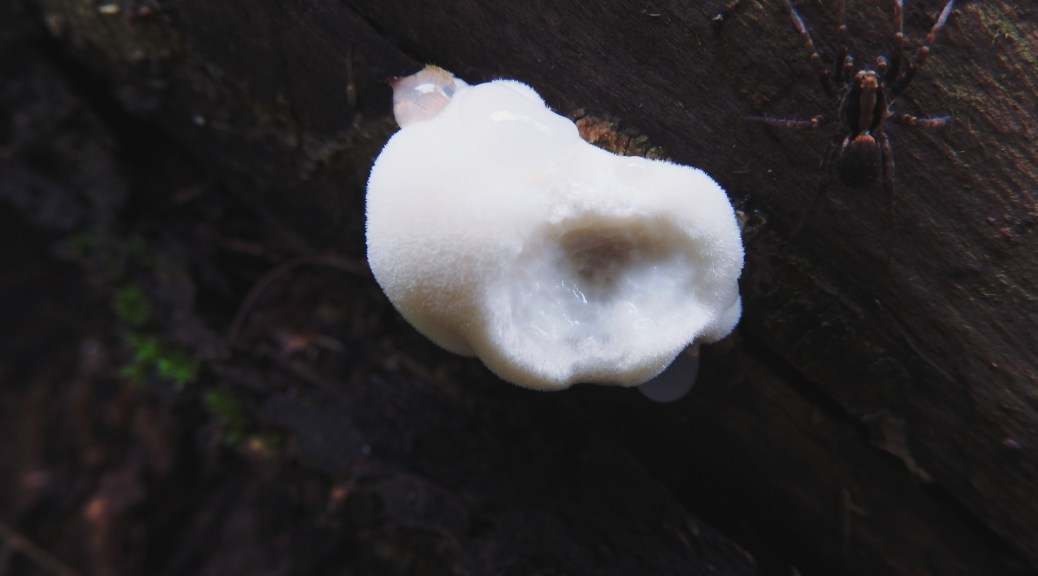 Widziałam za to małe jeziorko a raczej staw o niebieskawym odcieniu na tle szarego zimowego jeszcze lasu i szpiczastej góry pokrytej świerkami, w którym turystki urządziły kąpiel swoim pieskom zanim ruszyły wzdłuż zielonego szlaku. Jednak nie mam pojęcia gdzie to niewidoczne jeziorko miałoby istnieć. Za to atmosfera zagadkowości i cienia tamtych wydarzeń jest wpisana w każdą tkankę tego miejsca. Srebrne buczyny stoją na straży jak wojsko naprzeciw pluskom i bełkotom pędzącego donikąd strumyka. Żółte i zielone porosty na spękanych korach już lekko zmatowiały zostając jednak dalej w trybie czuwania na zmiany wilgoci. I wszystko byłoby tak, jak poprzednim razem gdyby nie biel.